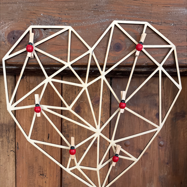 -Le cœur géométrique de 38cm avec les attaches pour fixer des photos