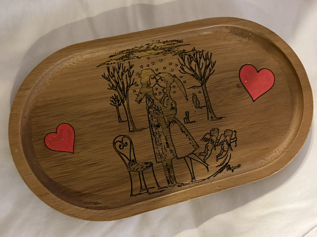 une pièce toute mignonne en acacia gravée et peinte à la main