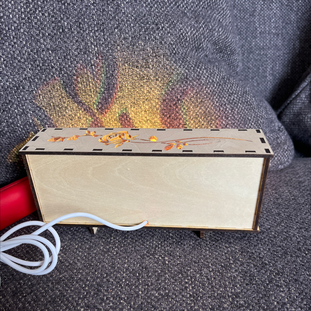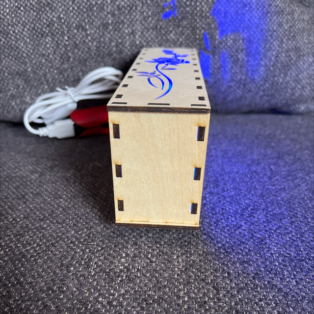 le kit comprend la boîte pré-découpée, la led à brancher par usb, la télécommande avec sa pile.