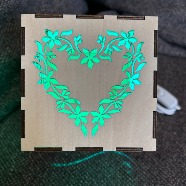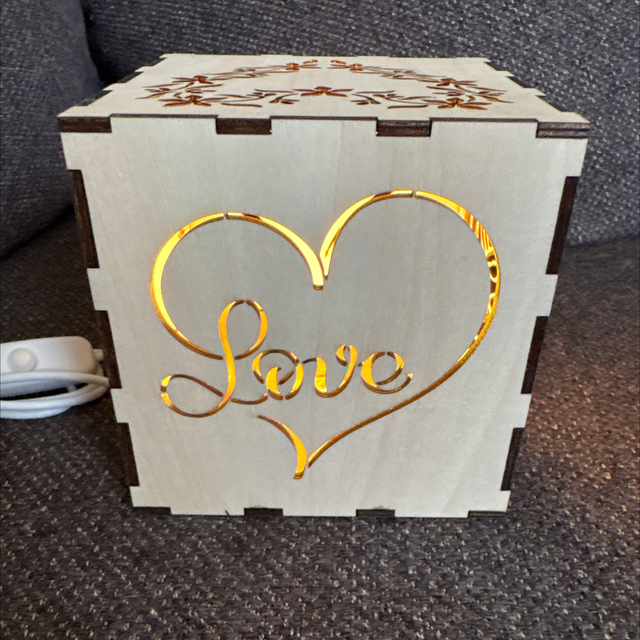 un bel objet lumineux de 10x10x10 aux faces ajourées, éclairé par Led pilotable avec la télécommande !