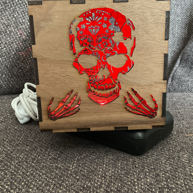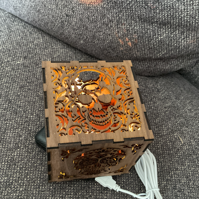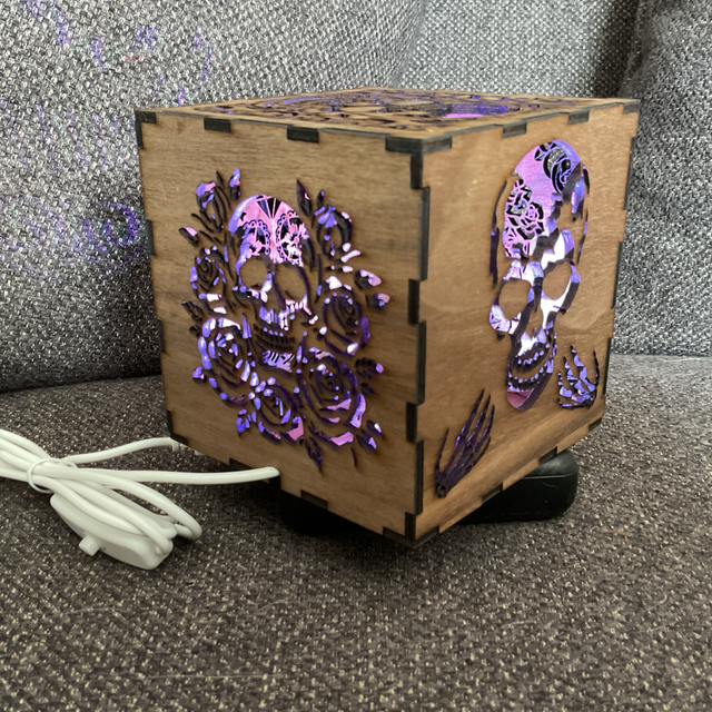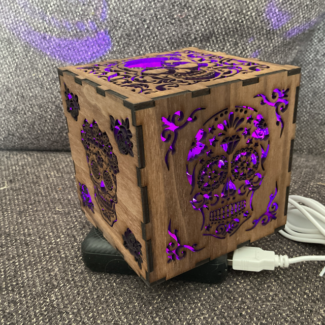 Voici le cube lumineux, crâne en noyer