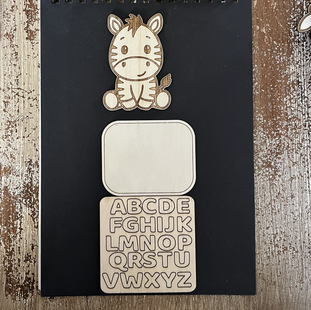 Ce kit déco de porte est composé d’un petit animal qui mesure environ 9cm d’un plaque de fond et une plaque alphabet !