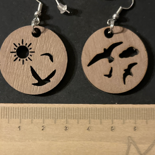 Oiseau nuage soleil en noyer